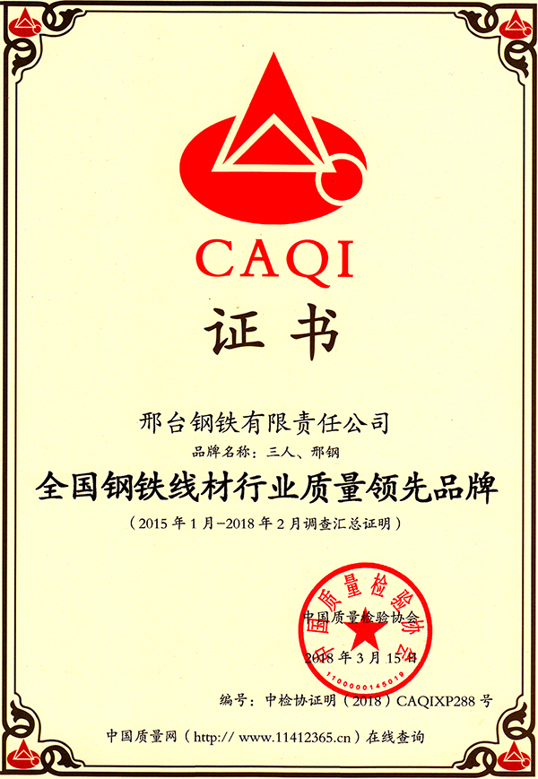 “三人、邢鋼”品牌榮獲全國鋼鐵線材行業(yè)質(zhì)量領(lǐng)先品牌