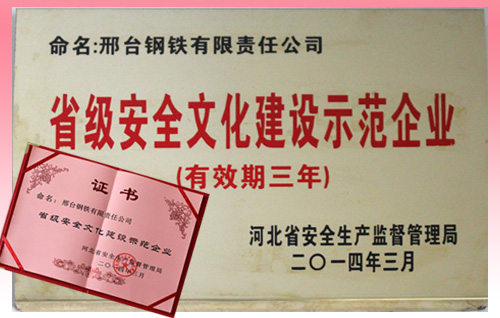 2015年1月16日,河北省安全生產(chǎn)協(xié)會在2014年度總結(jié)表彰會上授予邢鋼“安全生產(chǎn)先進(jìn)單位”榮譽(yù)稱號。