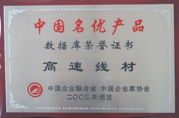 2003年,邢鋼高速線材獲中國名優(yōu)產(chǎn)品數(shù)據(jù)庫榮譽證書。