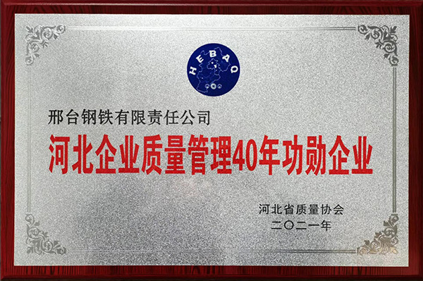 2022年7月,河北省質(zhì)量協(xié)會(huì)公布了“河北企業(yè)質(zhì)量管理40年功勛企業(yè)名單”,邢臺(tái)鋼鐵有限責(zé)任公司榮獲“功勛企業(yè)”榮譽(yù)稱(chēng)號(hào)。