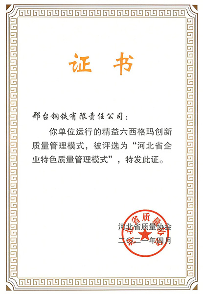 2021年4月,由河北省質(zhì)量協(xié)會(huì)評(píng)選的首批“河北省企業(yè)特色質(zhì)量管理模式”名單揭曉。邢鋼申報(bào)的“精益六西格瑪創(chuàng)新管理模式”,憑借理念先進(jìn)、方法科學(xué)、措施易行、效果明顯等優(yōu)勢(shì)上榜首批名單。