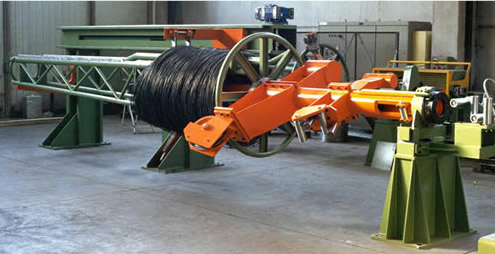 1、推進(jìn)裝置將盤條推進(jìn)至工作位置,經(jīng)放線機(jī)后進(jìn)入到同步裝置,同步裝置的滑輪可以累積大約2米的盤條,用于在萬(wàn)一發(fā)生纏繞時(shí)停止生產(chǎn)線。