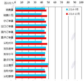 蘭格鋼鐵信息研究中心統(tǒng)計(jì)發(fā)布2014年10月鋼鐵流通業(yè)PMI總指數(shù)為47.8,環(huán)比微升0.6個百分點(diǎn)(見圖1),顯示鋼鐵流通市場活躍度略有好轉(zhuǎn)。從各項(xiàng)分指數(shù)看,10月份鋼鋼鐵流通業(yè)PMI調(diào)查的10項(xiàng)分指數(shù)5升5降。其中,企業(yè)銷量增加,下游訂單增加,但企業(yè)對后市較為謹(jǐn)慎,采購意愿未增(見圖2)??傮w判斷11月鋼鐵流通市場需求景氣微升。