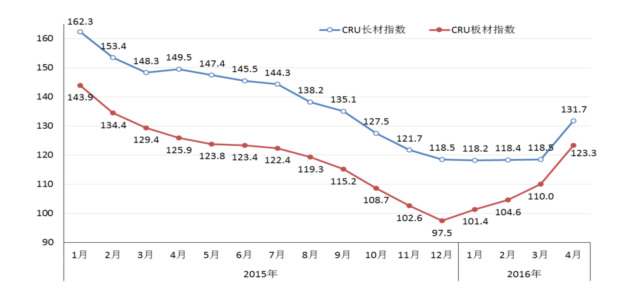 CSPI國內(nèi)長材和板材價格指數(shù)走勢圖