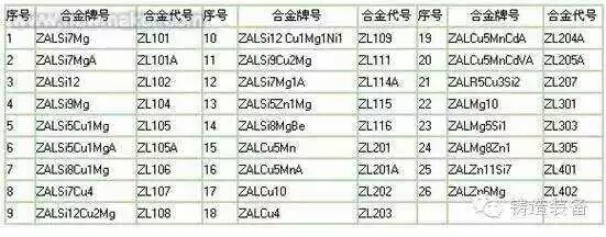鋁合金按照加工方法的不同分為兩大類,即壓力加工鋁合金和鑄造鋁合金(分別以YL和ZL表示)。在鑄造鋁合金中又依主要加入的合金元素的不同而分為四個(gè)系列,即鑄造鋁硅合金、造鋁銅合金、鑄造鋁鎂合金和鑄造鉛鋅合金(分別以 ZL1X X,ZL2 X X,ZL3 X X和ZL4 X X表示),在每個(gè)系列中又按照化學(xué)成分及性能的不同而分為若干牌號(hào)。表3中列出了鑄造鋁合金國(guó)家標(biāo)準(zhǔn)所包括的幾種鋁合金的牌號(hào)。