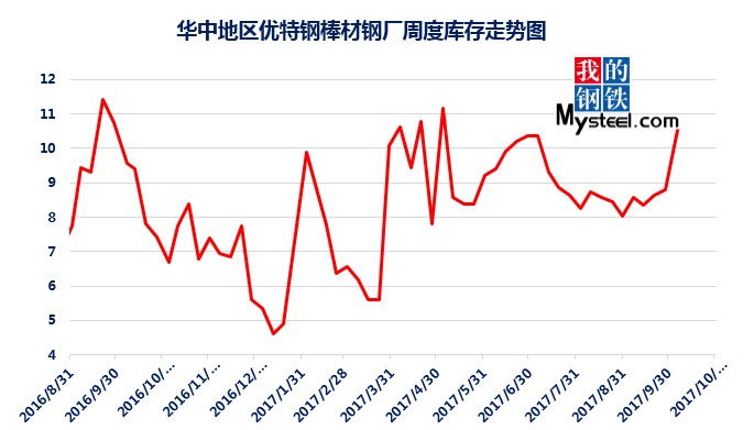 概述:國(guó)慶、中秋疊加的長(zhǎng)假已經(jīng)結(jié)束,為讓廣大客戶朋友更快了解市場(chǎng)的變化情況,我們對(duì)國(guó)內(nèi)的優(yōu)特鋼廠和主流市場(chǎng)庫(kù)存做了調(diào)研,具體情況如下:1、鋼廠方面:現(xiàn)全國(guó)優(yōu)特鋼廠棒材總庫(kù)存86.92萬(wàn)噸,較國(guó)慶節(jié)前增加5.67萬(wàn)噸,環(huán)比增加6.5%。2、社會(huì)庫(kù)存:據(jù)Mysteel對(duì)全國(guó)25個(gè)市場(chǎng)的貿(mào)易商和倉(cāng)庫(kù)跟蹤,現(xiàn)全國(guó)優(yōu)特鋼棒材樣本總庫(kù)存69.99萬(wàn)噸,較國(guó)慶節(jié)前增加5.86萬(wàn)噸,環(huán)比增加9.14%。