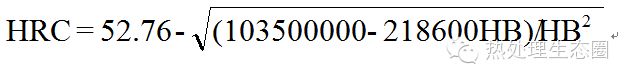 本公式與國家標(biāo)準(zhǔn)實(shí)驗(yàn)換算值對照,換算式計(jì)算結(jié)果與標(biāo)準(zhǔn)實(shí)驗(yàn)值之誤差為?0.1HRC。