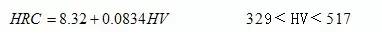 進(jìn)行修正后得出洛氏硬度與維氏硬度的換算公式為: