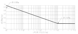 對很多金屬已經(jīng)進(jìn)行了大量的疲勞試驗(yàn)。從這些試驗(yàn)中,已經(jīng)開發(fā)出拉伸強(qiáng)度和循環(huán)次數(shù)的曲線圖。鍛鋼的一個(gè)例子如圖1所示。 在這個(gè)對數(shù)記錄圖上的垂直坐標(biāo)標(biāo)示出了施加的應(yīng)力與鋼的極限拉應(yīng)力“SU”的比例,而橫坐標(biāo)是應(yīng)力循環(huán)至失效的次數(shù)。SN曲線的左側(cè)表明,在高循環(huán)載荷下的鋼件產(chǎn)生的應(yīng)力占了拉伸強(qiáng)度的較大比例,在一定數(shù)量的循環(huán)之后就會(huì)失效。SN曲線的右側(cè)表明,如果循環(huán)應(yīng)力保持在可定義的極限以下,則部件將具有無限的壽命。曲線還告訴我們,如果一個(gè)鋼件只有一個(gè)加載周期,其應(yīng)力大于其拉伸強(qiáng)度,則該鋼件將失效(如當(dāng)一個(gè)小螺栓如果擰緊時(shí)斷開)。如果施加的應(yīng)力是拉伸強(qiáng)度的90%或更多,它也會(huì)在小于一千個(gè)周期內(nèi)失效。但如果應(yīng)力保持在抗拉強(qiáng)度的一半以下,它就不會(huì)疲勞。