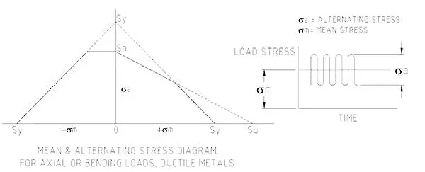 知道一部分將受到波動(dòng)負(fù)載需要設(shè)計(jì)師設(shè)計(jì)的部分,為該條件。使用已知的極限拉伸應(yīng)力和屈服應(yīng)力(金屬首先開始永久變形的應(yīng)力,約80~90%的拉伸應(yīng)力),設(shè)計(jì)者構(gòu)造一個(gè)應(yīng)力限制包絡(luò),如圖2所示。然后設(shè)計(jì)該部件以使施加到其上的循環(huán)載荷為控制在包絡(luò)內(nèi)的應(yīng)力。