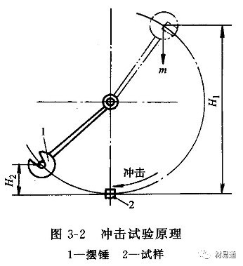 試驗(yàn)過(guò)程:將樣品水平放在試驗(yàn)機(jī)的支座上,缺口位于沖擊相背的方向。然后將具有一定質(zhì)量m的擺錘舉至一定高度H1,使其獲得一定位能mgH1