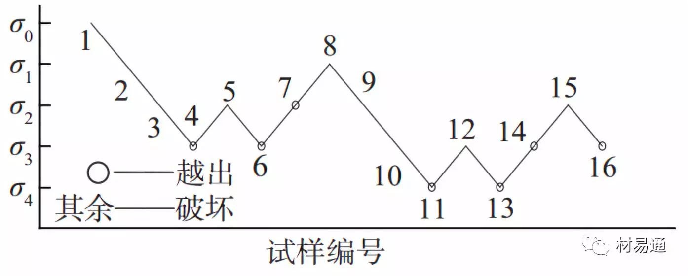 試驗方法:(1)試驗從高于疲勞強度的應(yīng)力水平開始,然后逐級降低(如疲勞強度未知,可選用材料的靜態(tài)拉伸屈服強度Rp0.2或ReL);(2)在應(yīng)力水平下進(jìn)行第一根試驗,如果在指定壽命N=107次之前發(fā)生破壞,則下一根試樣就要在低一級的應(yīng)力水平下進(jìn)行,反之,則要在高一級的應(yīng)力水平下進(jìn)行,直至完成全部試樣;(3)各級應(yīng)力水平之差叫做“應(yīng)力增量”,在整個試驗過程中,應(yīng)力增量應(yīng)保持不變。