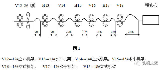為了保證高速、穩(wěn)定地生產(chǎn),設計者在軋線共設置了七個活套裝置:兩個水平活套(在14#--15#機架間,18#--19#機架間)和五個立活套。布置情況及活套跨距如(圖1)所示。至于活套掃描器與活套臺的距離A,要根據(jù)活套的套量偏差H以及活套檢測角度α進行初始調(diào)整及校準。注意活套掃描器安裝位置不同,會影響到測得的實際值。其一般計算公式為A=H/(2×tgα/2)。在軋制某些規(guī)格時,有些活套可以不選用,那么此活套的控制不起作用,即起套輥不動作。