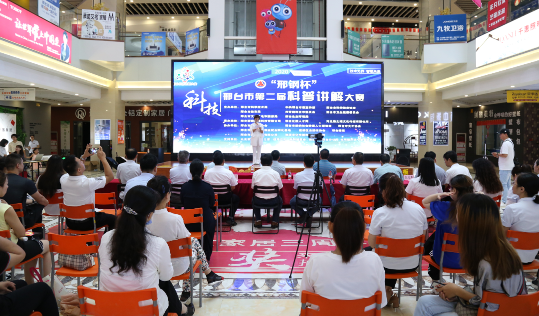 8月15日上午,由邢臺(tái)市科學(xué)技術(shù)局、中共邢臺(tái)市委宣傳部、邢臺(tái)市科學(xué)技術(shù)協(xié)會(huì)、邢臺(tái)市教育局、共青團(tuán)邢臺(tái)市委員會(huì)、邢臺(tái)市衛(wèi)生健康委員會(huì)、邢臺(tái)市文化廣電和旅游局、邢臺(tái)市生態(tài)環(huán)境局聯(lián)合舉辦的“邢鋼杯”2020邢臺(tái)市第二屆科普講解大賽啟動(dòng)儀式在邢臺(tái)眾友家居活動(dòng)廳舉行。