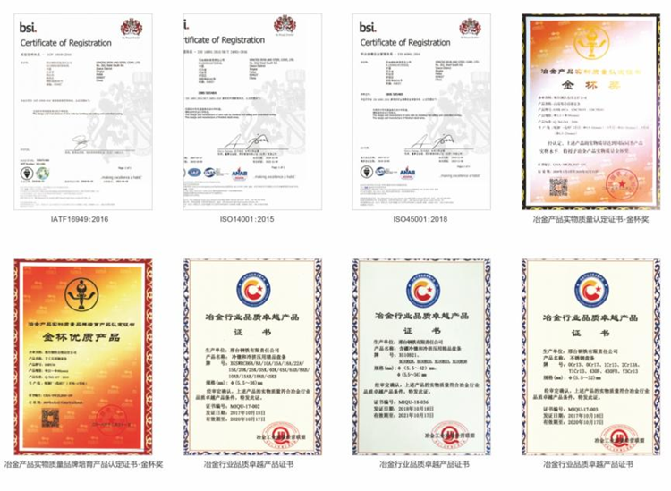 1999年邢鋼開始推行質量管理體系,成為最早一批通GB/T19000族標準過認證的鋼企之一。2006年,作為全國首批鋼鐵企業(yè),邢鋼全流程通過了英標認證公司TS16949汽車行業(yè)質量管理體系。產品研發(fā)也是芝麻開花節(jié)節(jié)高,通過創(chuàng)新研發(fā)模式相繼開發(fā)了汽車用鋼、鐵路用鋼,高強橋梁用鋼,耐候鋼、重熔鋼等產品,涵蓋冷鐓鋼、彈簧鋼、軸承鋼、純鐵、預應力鋼、易切削鋼、工模具鋼、耐候鋼等十八大系列。如今的邢鋼已經通過EMS,OHSMS等9個體系認證!