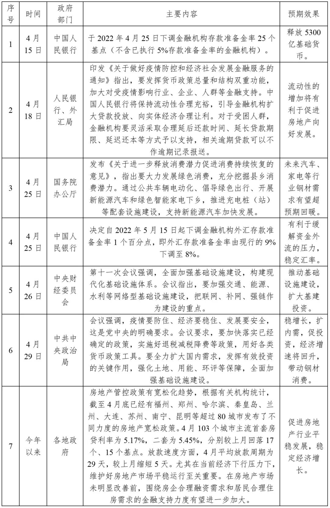 雖然3、4月份我國(guó)經(jīng)濟(jì)下行壓力加大,消費(fèi)、房地產(chǎn)、制造業(yè)等指標(biāo)數(shù)據(jù)下滑明顯。但是,近期一系列 穩(wěn)定經(jīng)濟(jì)增長(zhǎng)政策的持續(xù)出臺(tái),將對(duì)未來(lái)經(jīng)濟(jì)和鋼材消費(fèi)提供重要的支撐和動(dòng)力。