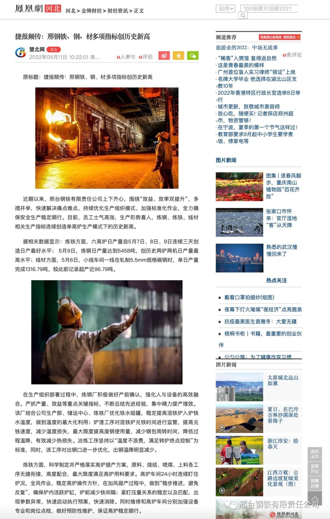 據相關數(shù)據顯示:煉鐵方面,六高爐日產量自5月7日、8日、9日連續(xù)三天創(chuàng)造日產最好水平;5月9日,煉鋼日產量達到5458噸,創(chuàng)歷史兩爐兩機日產量最高水平;線材方面,5月6日,小線車間一線在軋制5.5mm規(guī)格碳鋼時,單日產量完成1316.79噸,較此前記錄超產近96.79噸。
