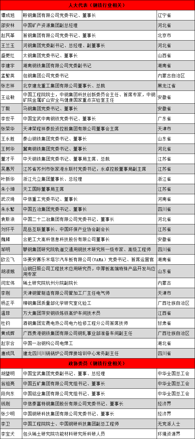 兩會鋼鐵代表、委員名單