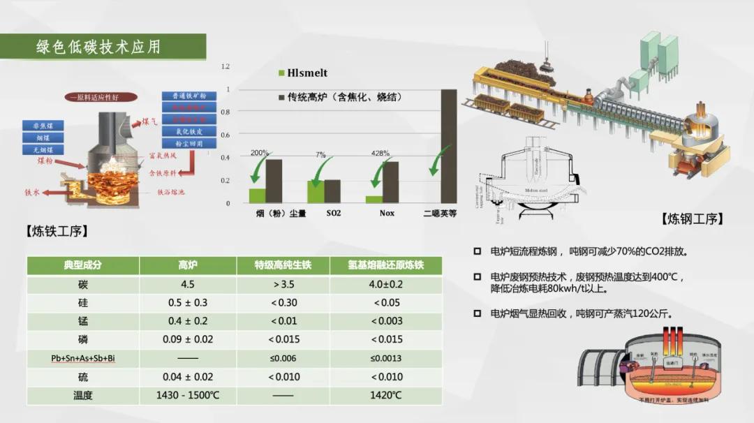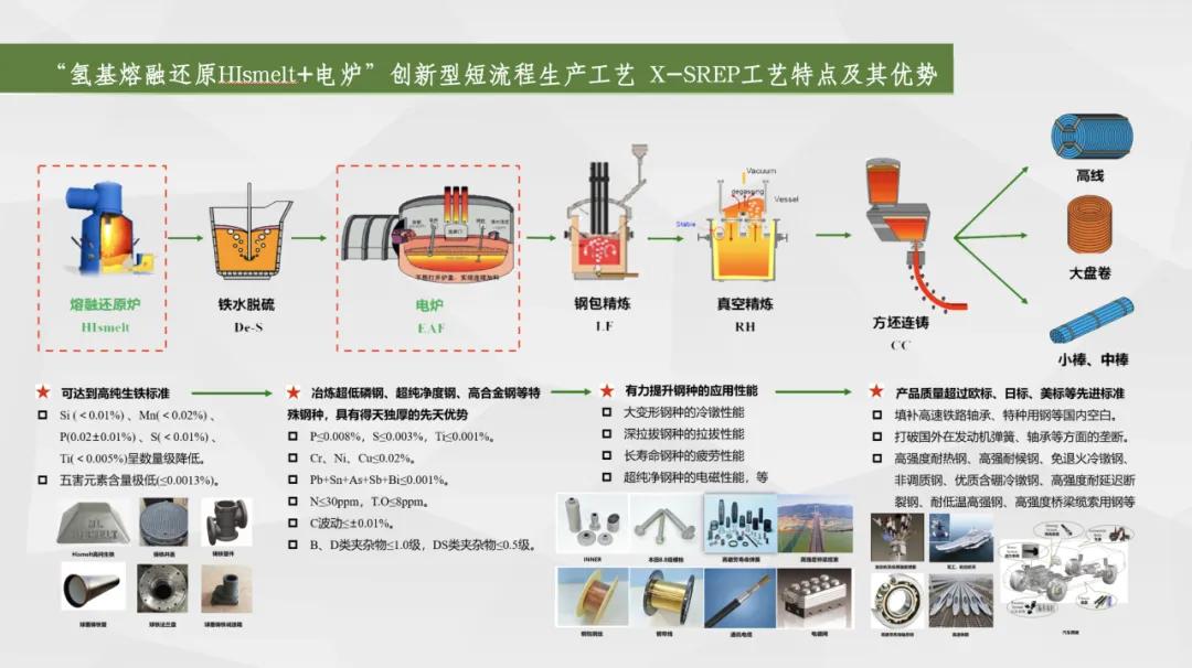 一是布局“碳達峰、碳中和”,實現(xiàn)綠色化,引領(lǐng)品牌可持續(xù)發(fā)展。采用的“熔融還原+電爐煉鋼”短流程工藝,取消了燒結(jié)、球團、焦化、預(yù)還原等工藝環(huán)節(jié),為世界首創(chuàng);和長流程工藝相比,預(yù)計可減少二氧化硫、氮氧化物排放38%,減少顆粒物排放89%,建廠即達到A級企業(yè)標(biāo)準(zhǔn),實現(xiàn)綠色冶金,對我國乃至世界鋼鐵行業(yè)發(fā)展具有創(chuàng)新性和引領(lǐng)示范的意義,是鋼鐵行業(yè)綠色轉(zhuǎn)型的典范。