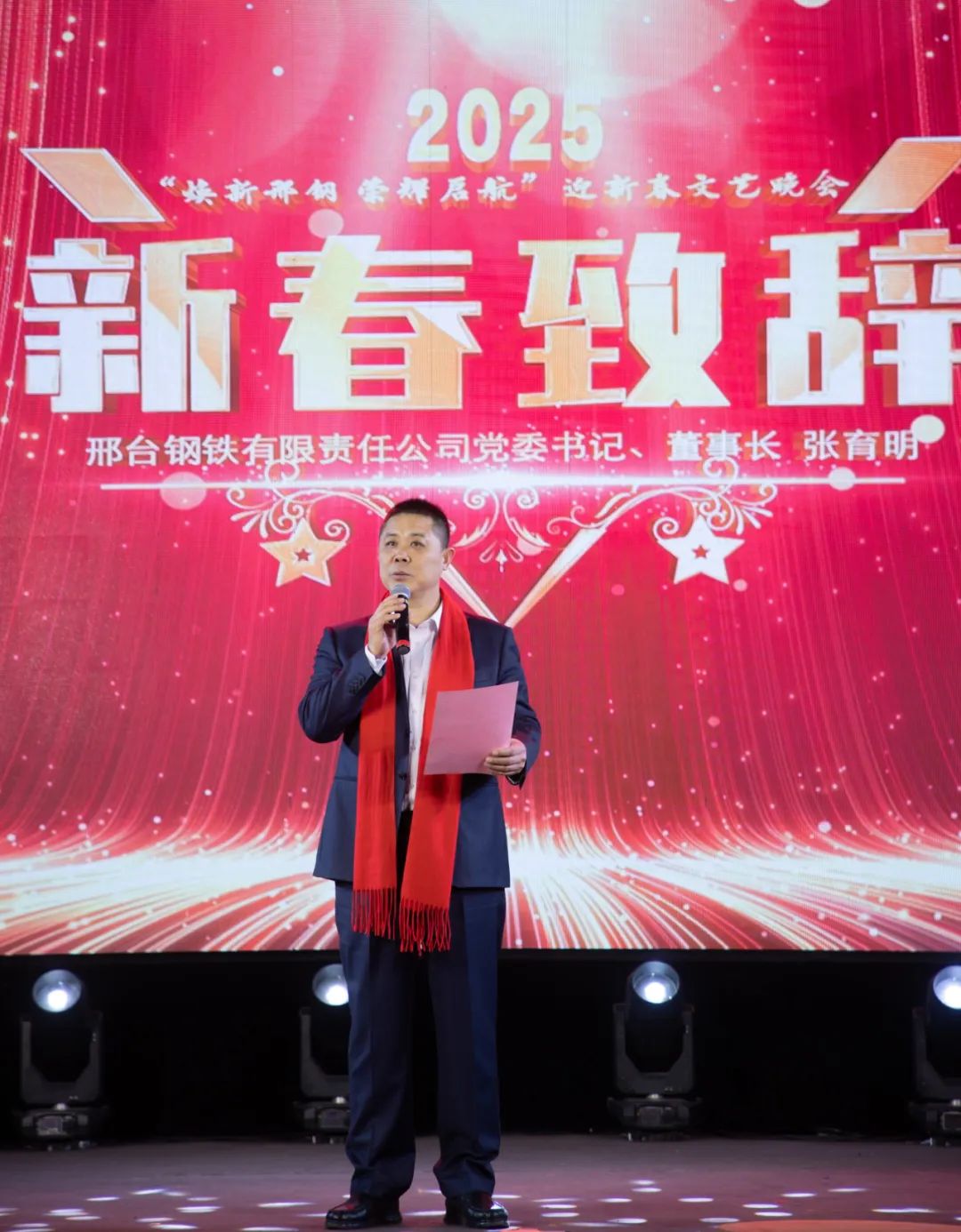 歲序更替,華章日新。1月22日,以“煥新邢鋼,榮耀啟航”為主題的邢鋼2025年新春聯(lián)歡會(huì)在公司會(huì)議中心炫彩啟帷。公司黨委書(shū)記、董事長(zhǎng)張育明攜公司全體中高層領(lǐng)導(dǎo)與2024年受表彰的先進(jìn)個(gè)人、員工代表歡聚一堂,喜迎乙巳年新春。