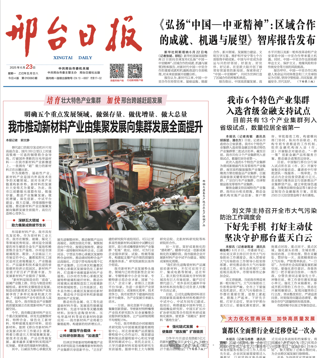 今年,我市確定新材料產(chǎn)業(yè)五個重點發(fā)展領域,涉及先進鋼鐵材料、特種合金、綠色化工新材料、特種玻璃及玻纖材料、前沿新材料。按照《邢臺市新材料產(chǎn)業(yè)發(fā)展2025年工作要點》部署,將著力推進五大領域集聚發(fā)展,使技術往高端、產(chǎn)品往終端發(fā)展,越來越多關鍵材料實現(xiàn)國產(chǎn)化突破,更多高性能新材料落地。